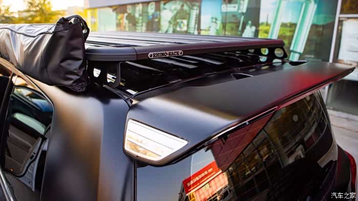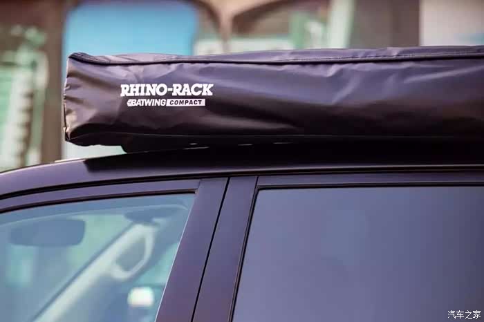 车顶框同样也是拓展野外生活的平台 一旁安装的侧边帐。