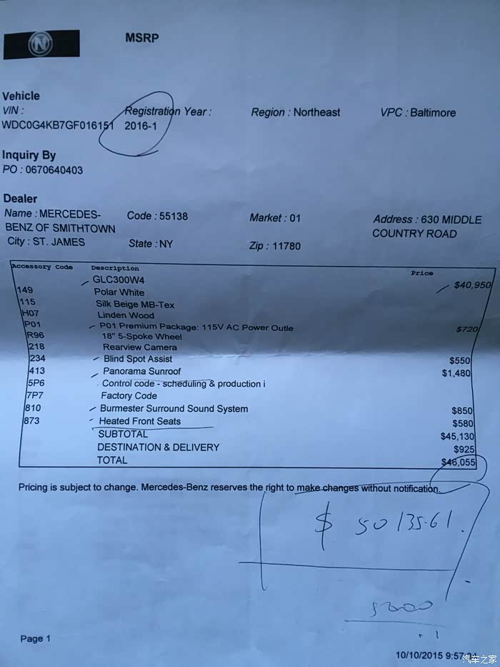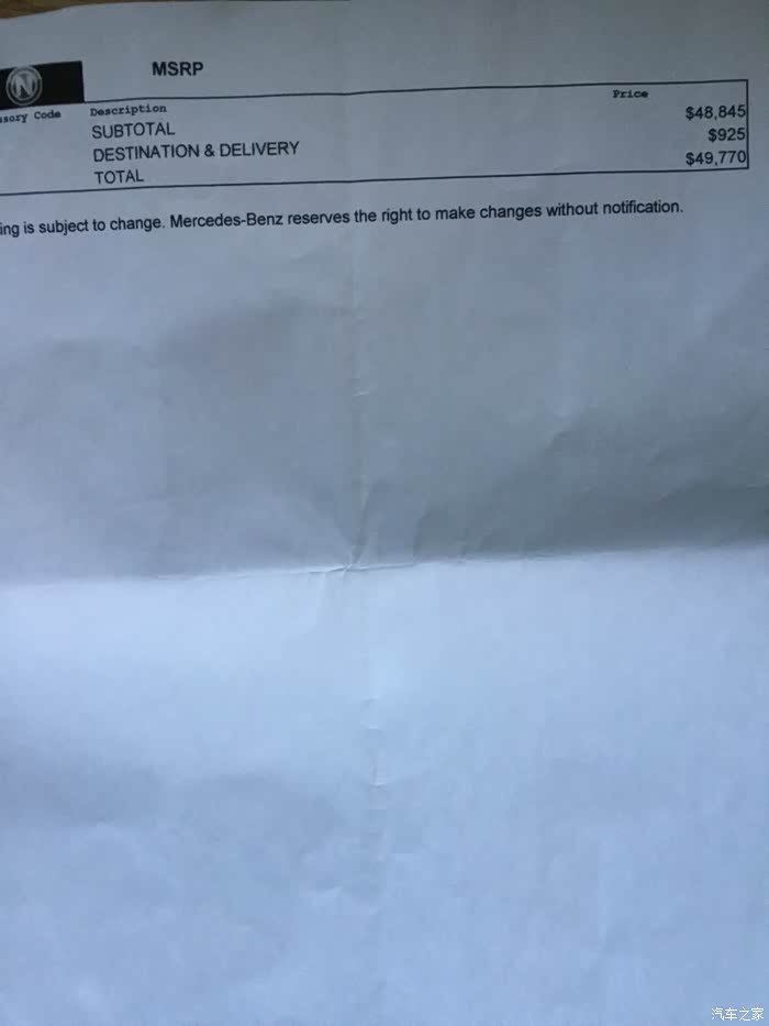 奔驰销售给我的GLC报价,没有一点优惠,所以只能放弃