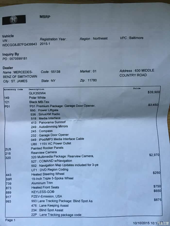 。于是气愤的离开然后去了奔驰店。结果销售告诉我GLC要到11月末才在美国上市,但可以暂时预定。一问多少钱,乞丐版基本啥都不带连上税要4万5千多美金,没有天窗没有雷达没有倒车影像。买个基本配备的话价格已经到4万9千美金了。而且销售非常坚决,坚持不让价,因为是新上市车,没有一点优惠。于是果断放弃。