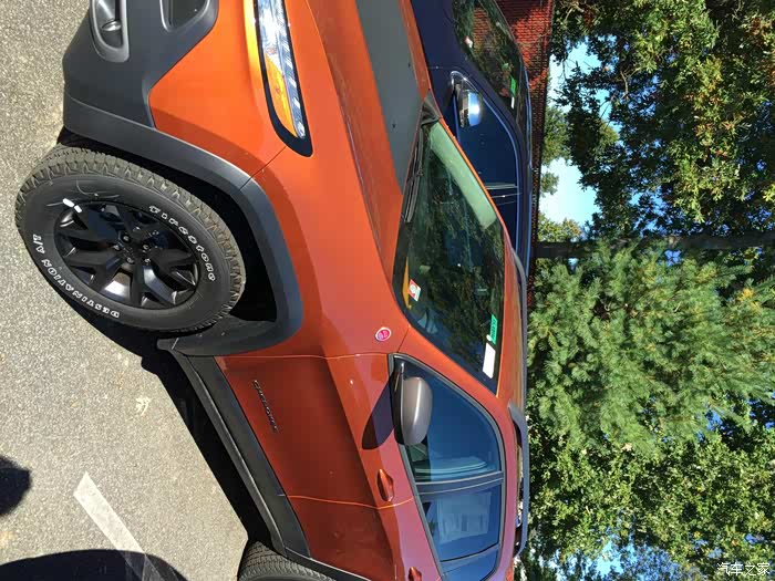一辆橙色自由光trailhawk