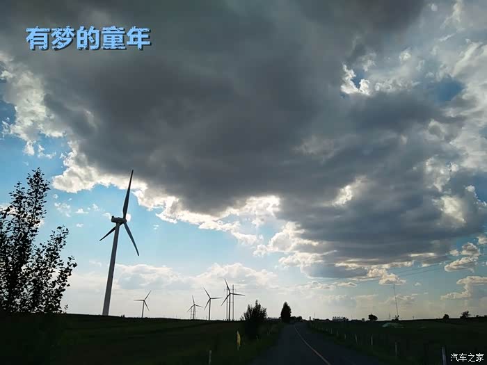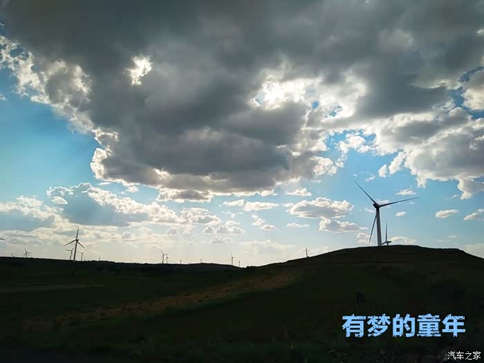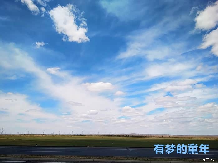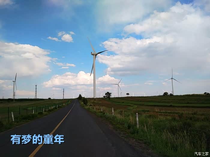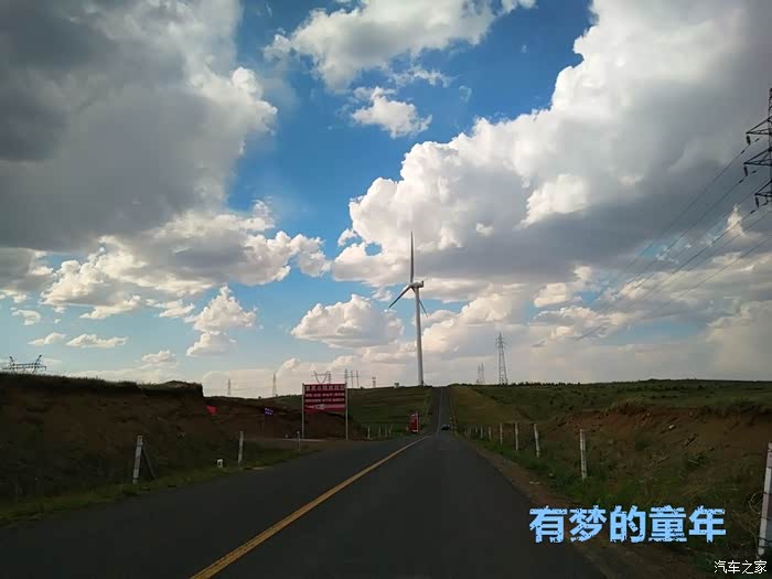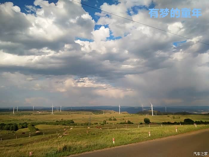 层叠的白云,广阔的草原,连绵的群山,成群的牛羊,随处可见的风车(大风车呀吱扭扭的转……)高低起伏的公路,美啦美啦美啦,醉啦醉啦醉啦
