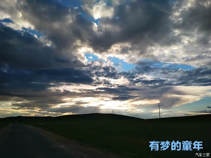 就这样又走了四个小时,也不知道翻过了几个山头,八点多,终于到了查干锡热音扎拉嘎,看到了平坦的公路,心中一块石头落地了,这惊心动魄的一晚啊,现在想起来还心有余悸