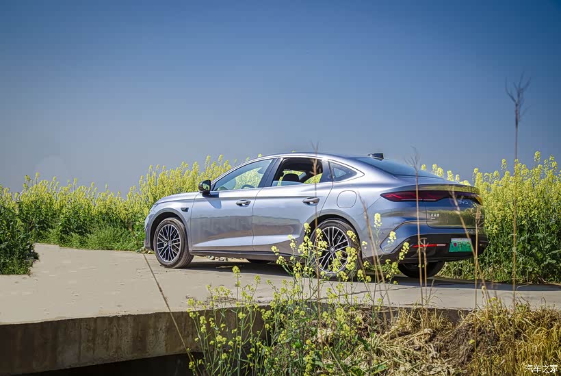来突出秦由引擎盖上优美的弧线、经过向后倾斜的A柱柱顶、向尾部下滑的车顶线条的舒展流畅大气