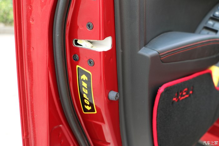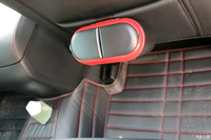 红黑脚踏垫,和车的整体很匹配!LD说,都不好意思踩进来!以后,谁要坐车,脱鞋进来