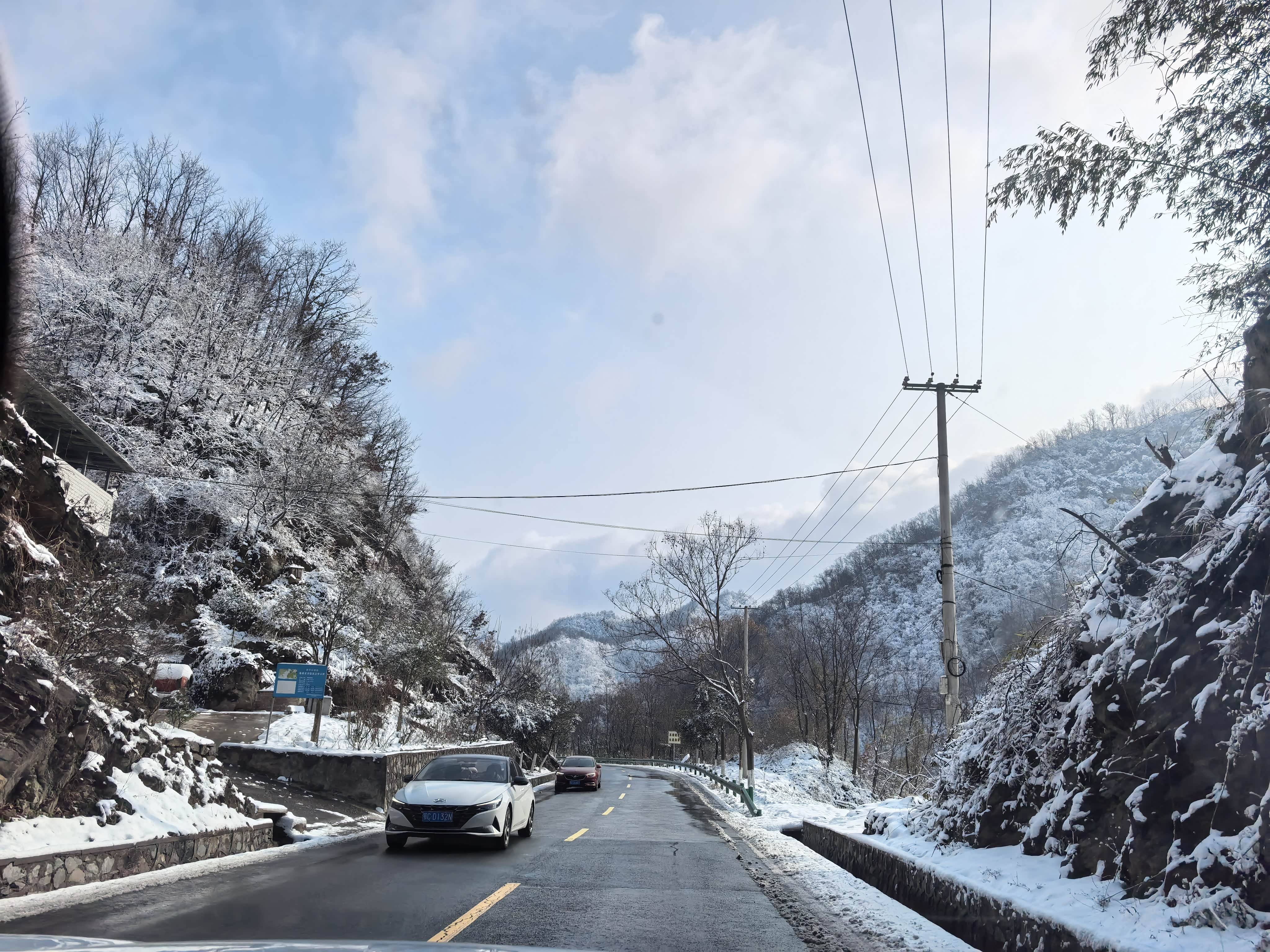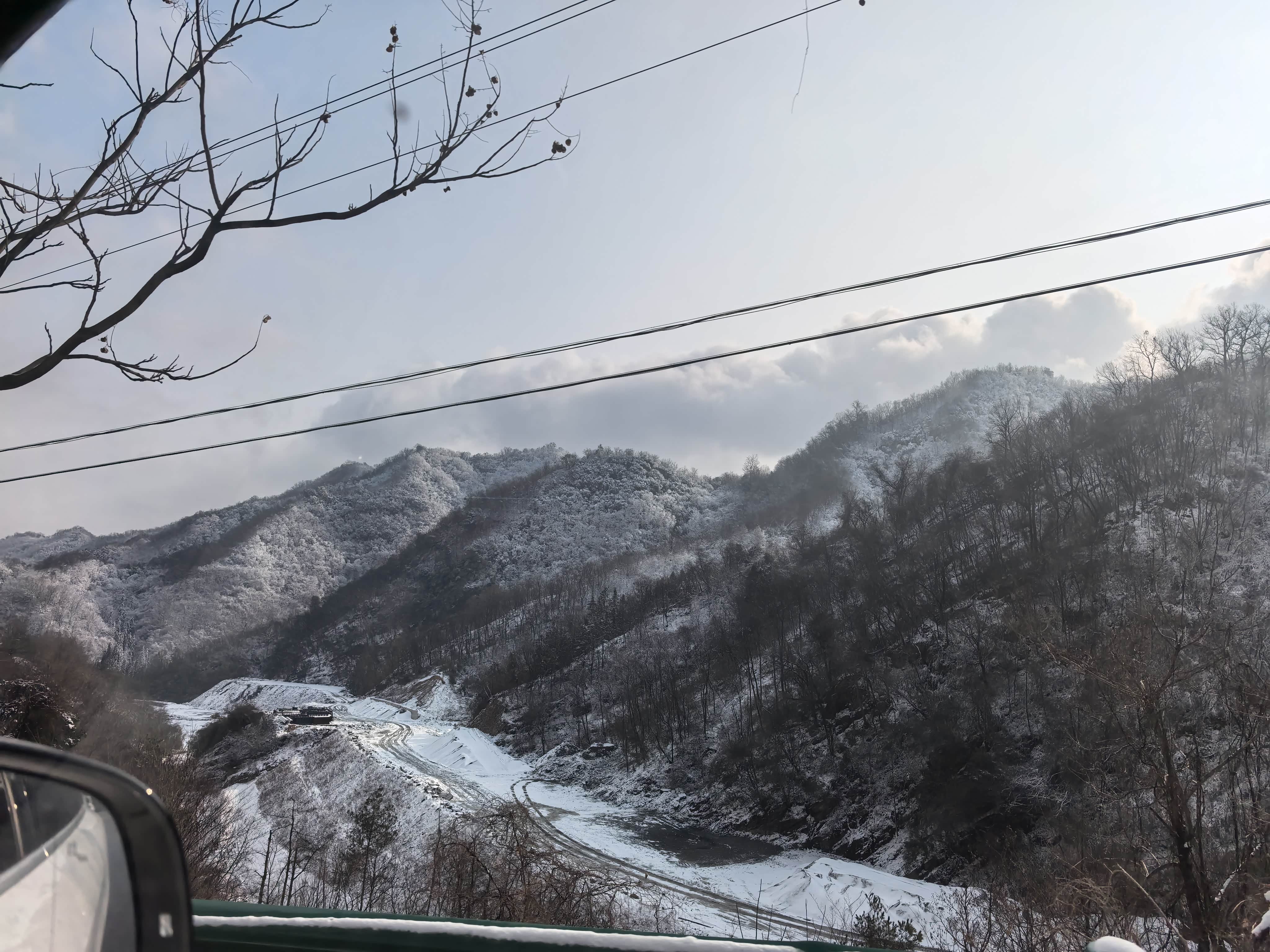 但是远处的山,就像白了头一样,让我们对深山雪景很是期待。