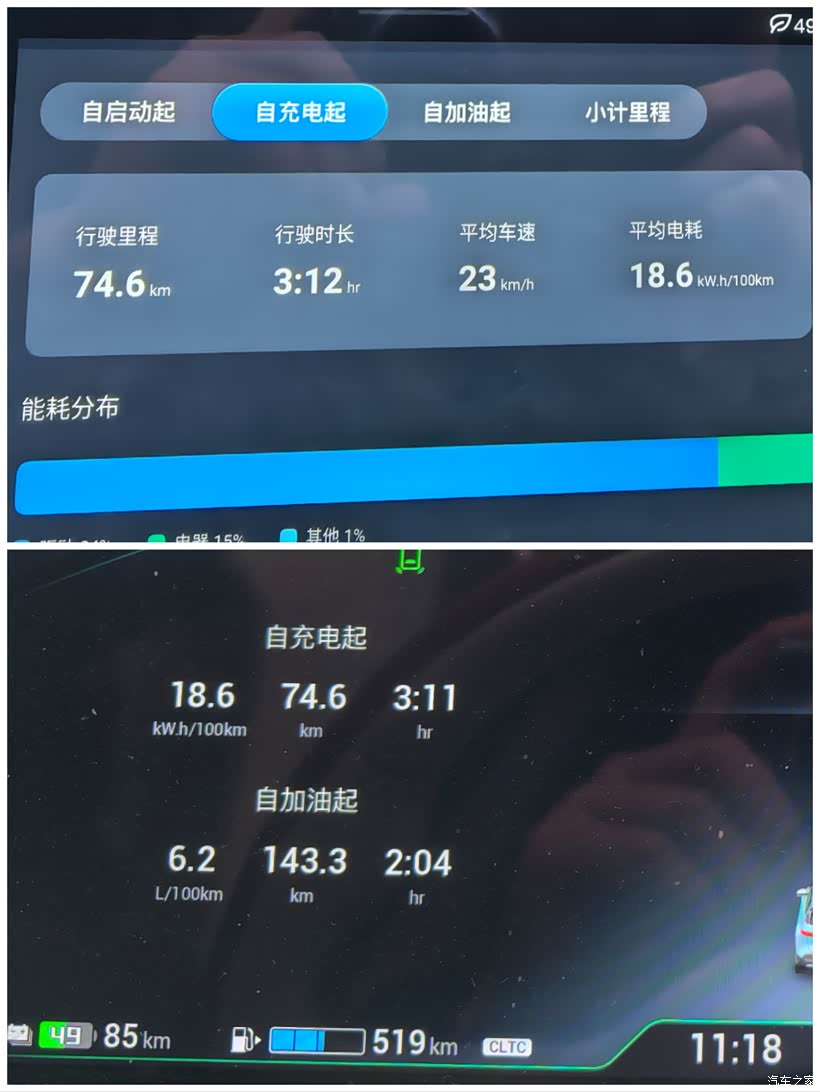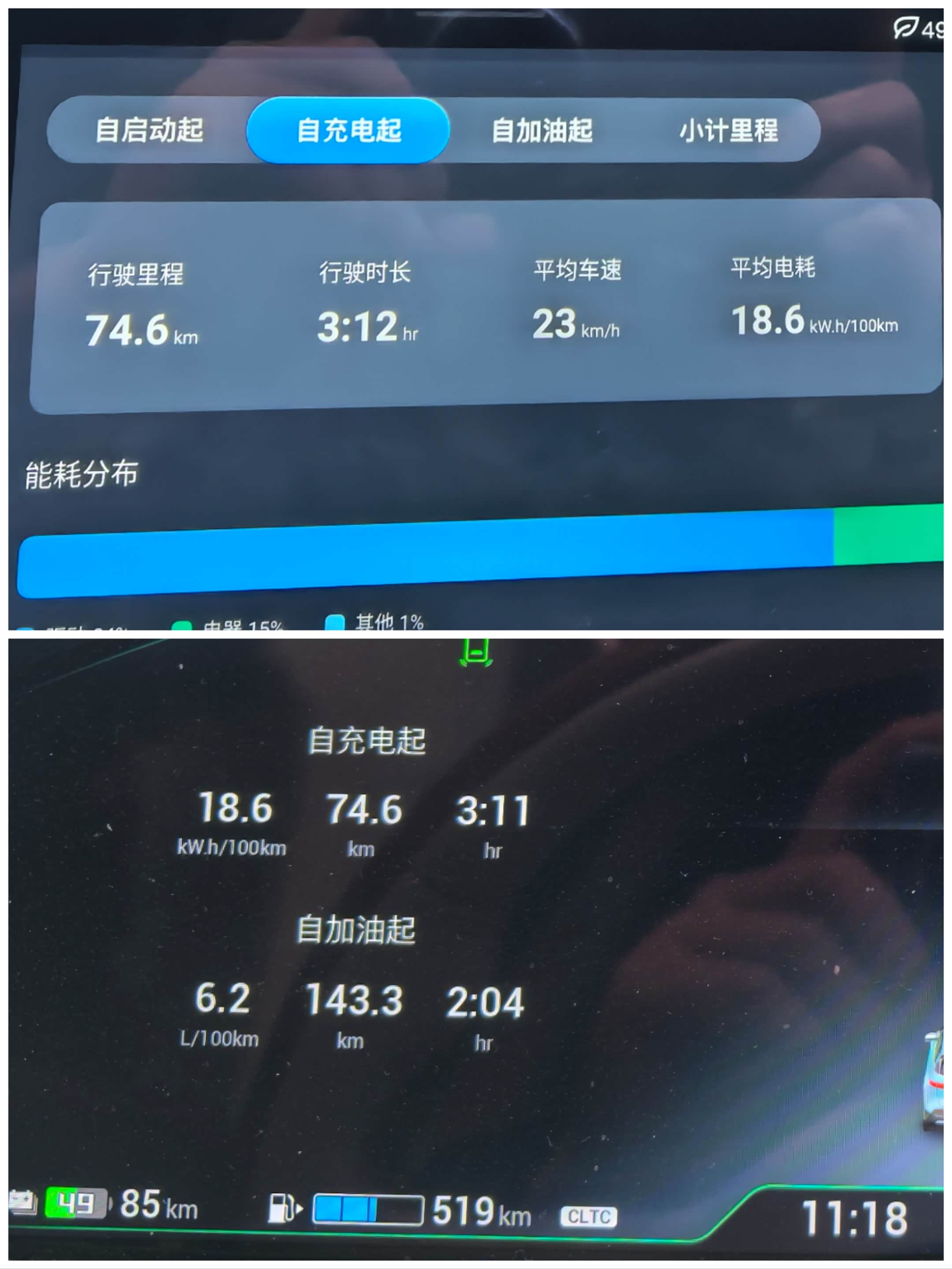 行驶距离:74.6km,平均能耗18.6kWh/100km(这是这两三天的记录,其中一半里程是今天雪地行程,另一半是元旦前上下班的里程)
