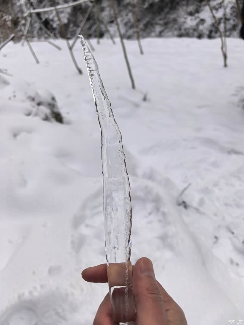 我从一棵树摘下了一个比较长的“冰棱”,给孩子玩耍,这也是雪天的乐趣之一。