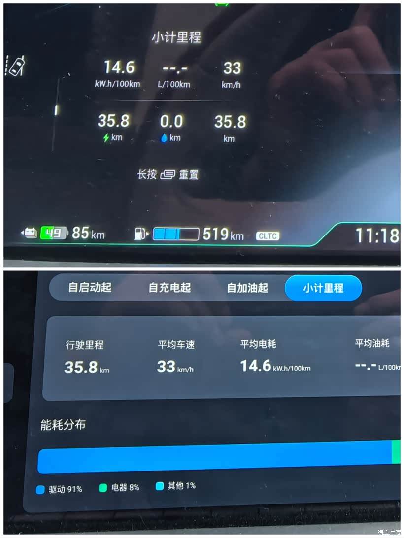 行驶距离:35.8km,平均能耗14.6kWh/100km(这都是今天的记录,往返里程相当于去除了上下坡的影响)