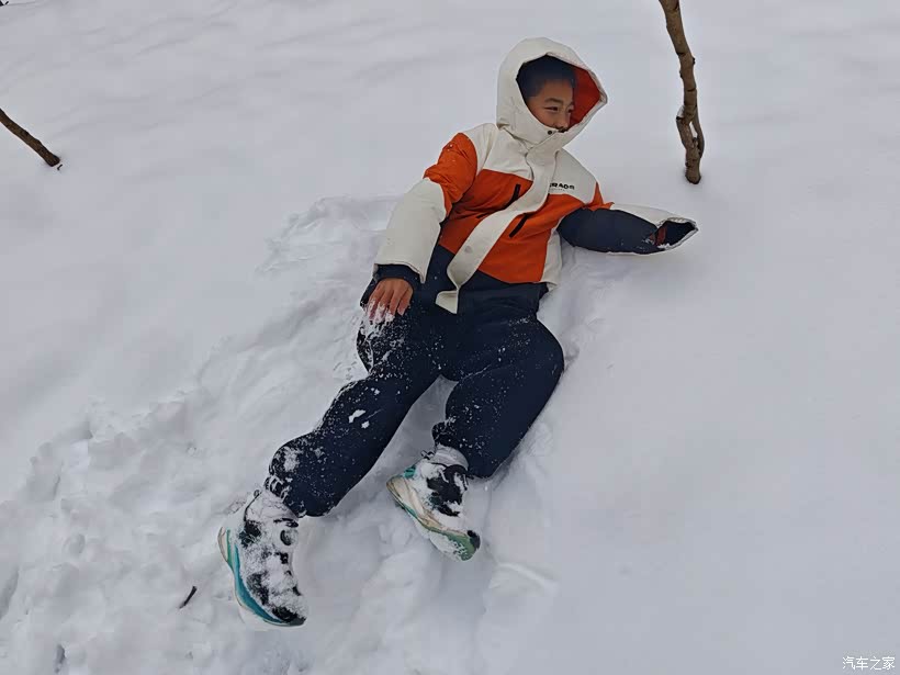 不一会,我们又在路边找到一块空地,这儿的积雪比较厚。