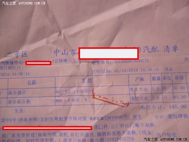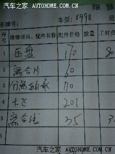 ,当时没有那么多RMB所以就不理他。有一天路过汽配店就买一套离合器想叫修理厂换也要两百人工钱。还要等两天才可以提车,想到自己这两天也放假了有空还是自己换好了。