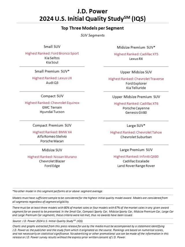 2024年JDpower新车质量榜排名