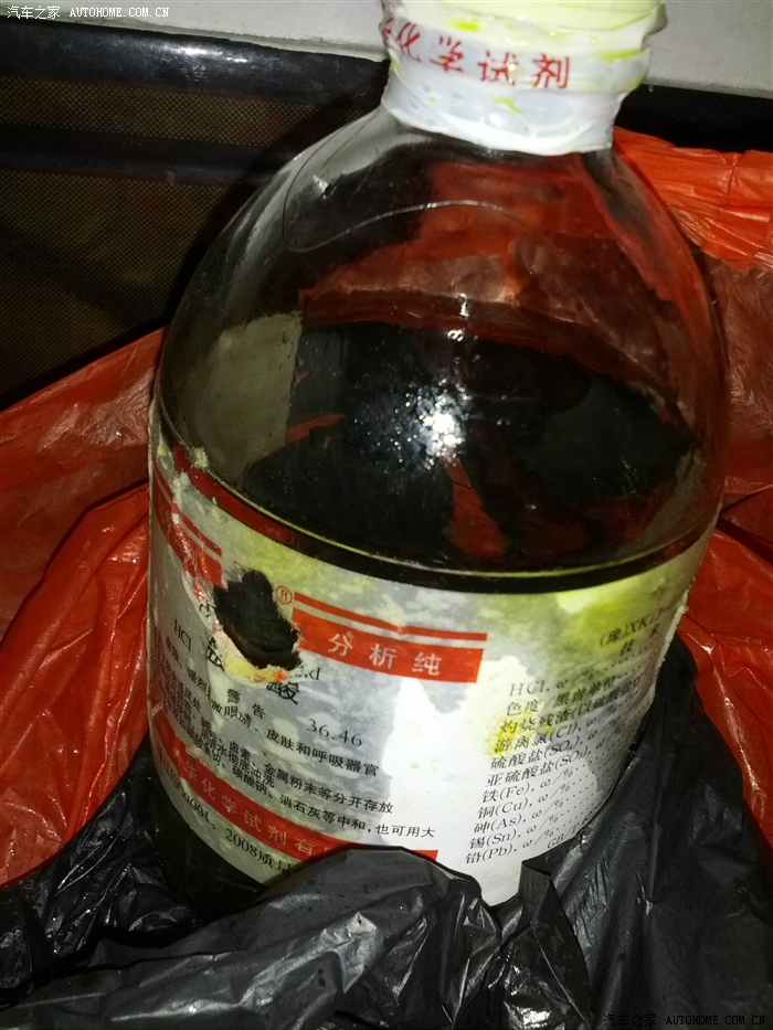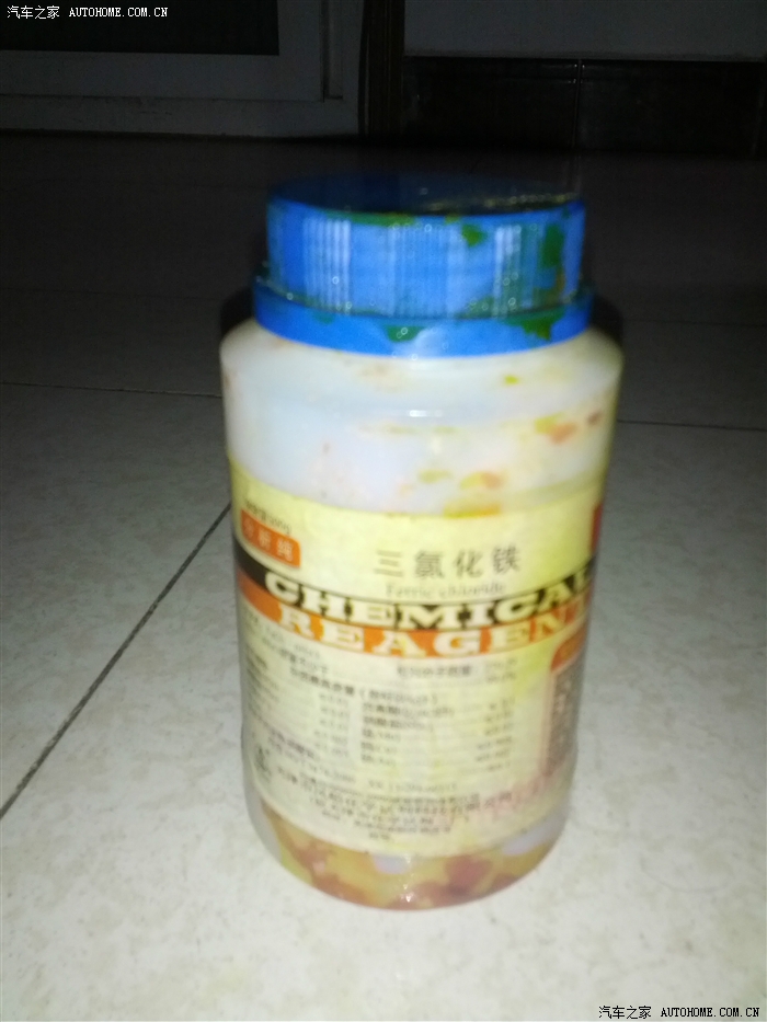 2、盐酸是化学试验室要的,浓度非常高,所以要加水稀释。其实可以用超市里面的除垢剂(主成分为稀盐酸,越便宜越好,因为贵的里面有保护剂,成分就变成草酸,草酸价格比盐酸高的多),直接用它化解块状的三氯化铁,不用加水。
