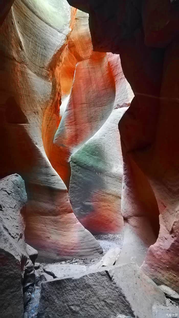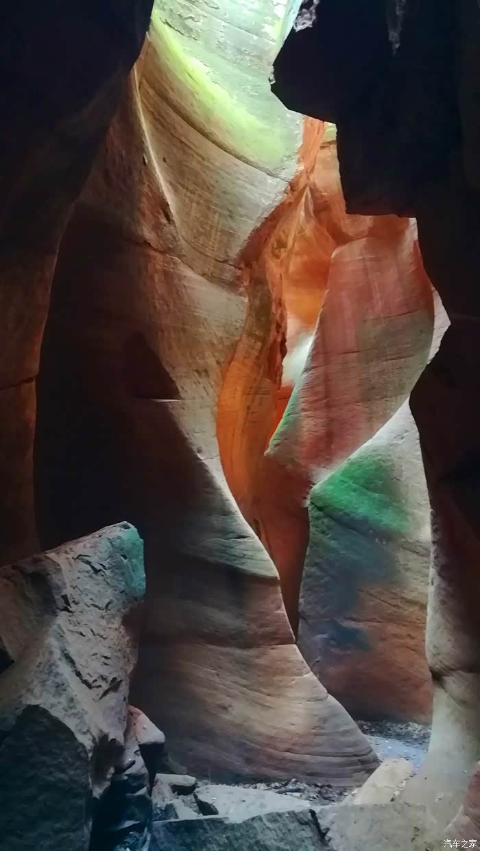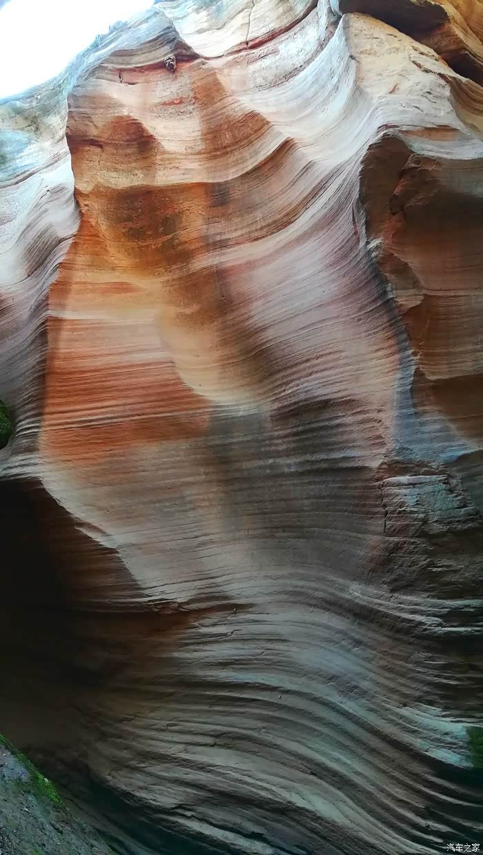 走进峡谷中,无论是俯视,还是仰视,每个角度看到的色彩都不一样的!色彩迷离的岩石,像流动的画卷,波浪起伏的线条,亦动亦静,令人惊叹。阳光透过狭窄的裂隙,在峡谷的凹凸岩壁上不断折射而呈现出迷人的“天使之光”色彩,从明亮的橙色到绚丽的红色,既奇幻斑斓又华贵而优雅,仿佛是上帝抚摸后留下光和影,随着阳光的变化,在不同的时间、不同的角度进行拍摄,红色砂岩所呈现出温暖色调的多样变化,令人叫绝!它是一种艳丽、磅礴的美、它还是一种魔幻、刺激的美!它向我们展现的是一个被地震撕裂、被洪水冲刷和被时间雕琢形成的梦幻世界,形成的各种蜿蜒窈窕的彩色线条,在阳光的照射下,美轮美奂、美得令人顿时感到神秘莫测、有种飘飘欲仙的美感。