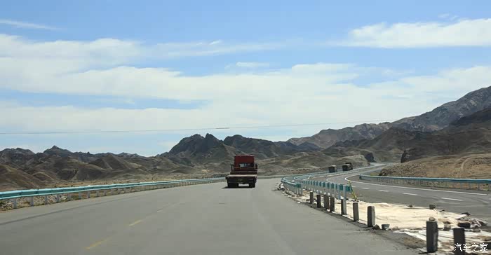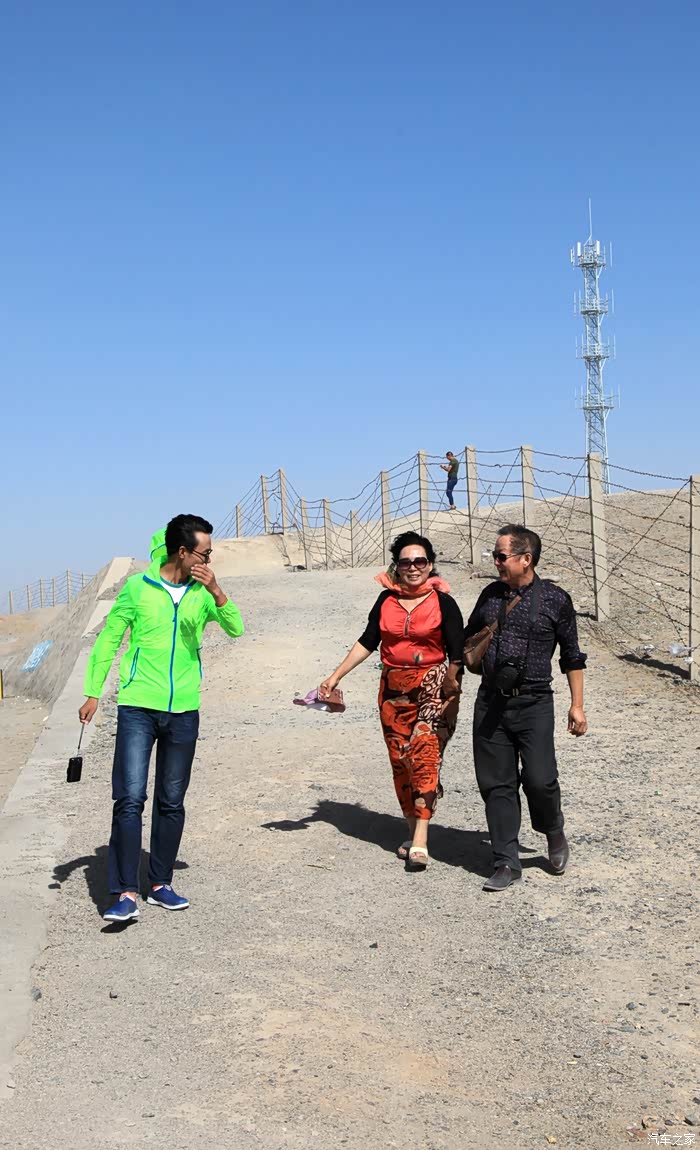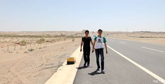 在柳园接受严格检查后正式离开甘肃入疆,中午到达著名的西域关隘——星星峡镇,简单用过午餐继续前行。在前方加油站驻车加油时闹了进疆的第一次笑话。由于高温袭来暑气蒸人,车内空调几乎不起作用,大家都昏昏欲睡,加满油出加油站前行一段,突然发现少了人——负责付账开单据的海彬竟然不在车上!立马刹车停应急车道,高速路不能掉头,只能等小伙子撵车了!