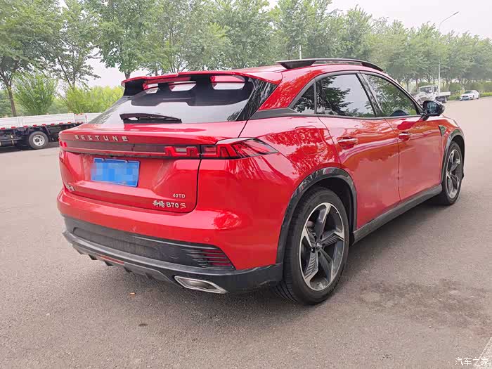 一开始提到B70S,我以为是三厢版奔腾B70加装了运动套件、降低车身的运动版,见到实车之后才发现我错了,B70S和B70的差别竟然这么大,B70S是一台集旅行车、SUV与一体的跨界轿跑车型。首先外形上用了很多符合年轻人口味的设计元素,整车镀铬元素用的很少,而使用了大量黑色元素,和红色部分形成了鲜明的对比,从配色上就凸显年轻人喜欢的运动感。前后灯组、分层的中网、造型独特的行李架、夸张的尾翼等等无不透露着奔腾B70S要表达的运动风。内饰部分主要以深色为主,加上座椅、中央扶手上的红色缝线来营造运动感,平底方向盘和双联屏效果也很不错。车身尺寸为4555/1850/1515mm,轴距达到了2750mm。搭配1.5T和2.0T发动机,今天试驾的是2.0T发动机的40版本,最大功率为224马力,最大扭矩为340牛米,而1.5T发动机最大功率为169马力,最大扭矩为238牛米。售价为10.99-14.29万。