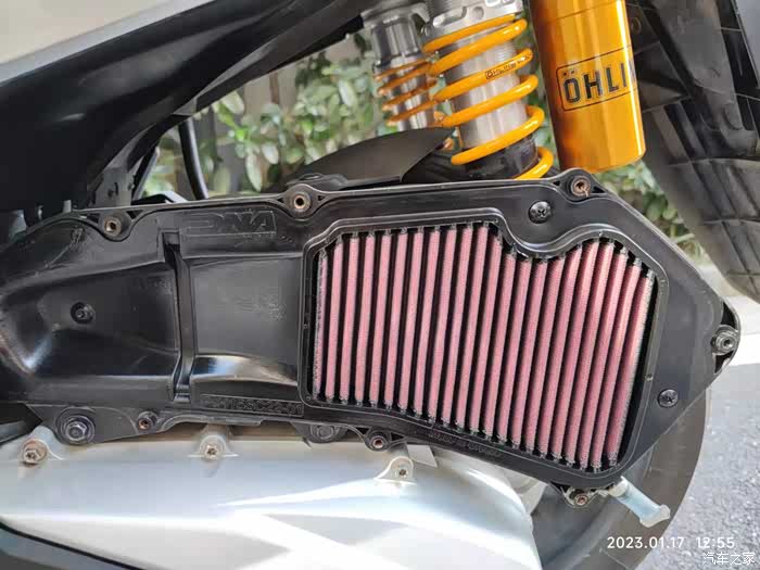 近期环境很好灰尘不大,所以换上了希腊DNA的高流量空滤(需要车型匹配,KN没有160的)。额,就是想试试,动手难度为零,感觉微小的难以察觉。但回油时顿挫立即变小了,很奇怪。