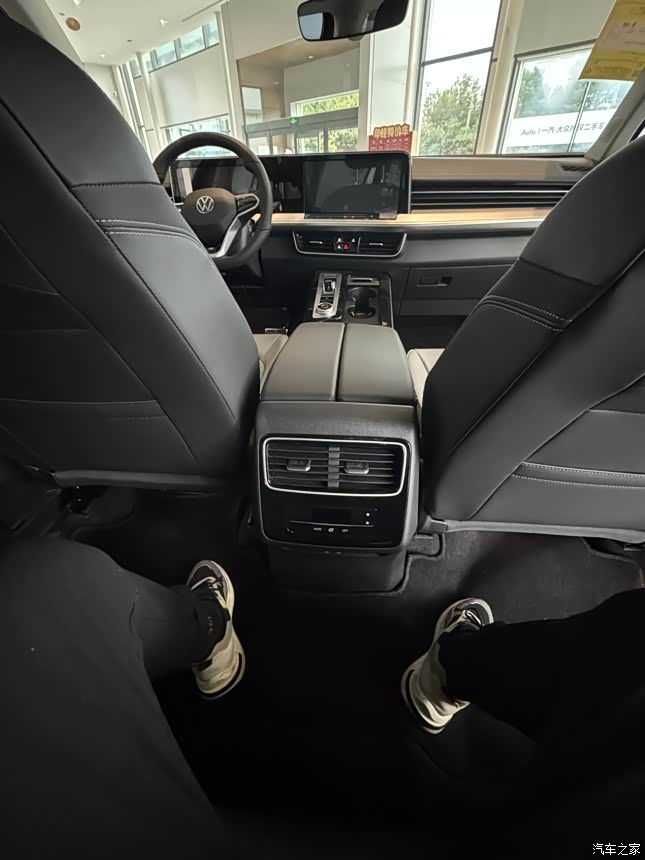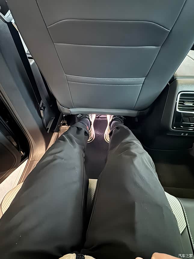 给我的最大感受就是空间大,我170cm身高,坐在后排腿伸直都够不到前排座椅底部,同时前排座椅的底部与地板的建议比较大,又无形中让后排的活动空间更大了,翘起二郎腿、车厢内活动都非常惬意和自如。座椅材质柔软,坐垫柔软,提供了比较好的支撑性和包裹性,长途驾驶也不会感到疲劳。