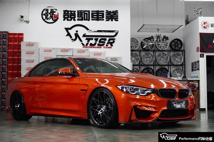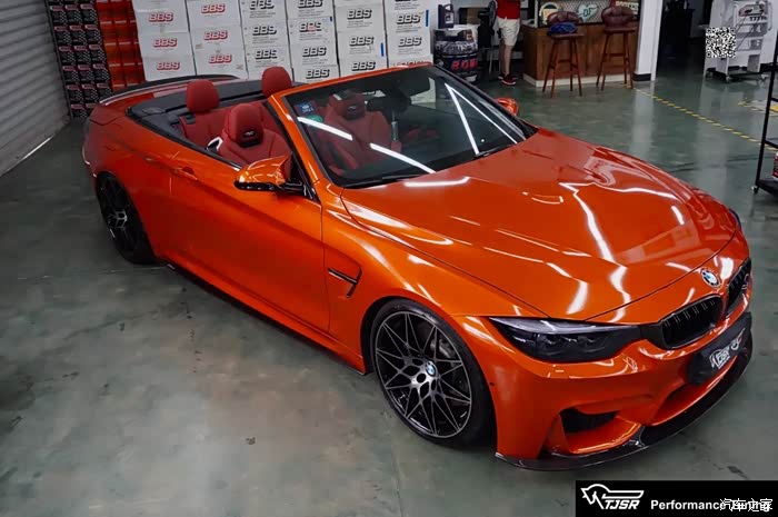 正如开头说道,M power虽动力充沛,却更是一辆能买菜能带娃的家用车,敞篷反而能在此基础上增添更多生活情调。车主在进行了KWV3的姿态调整与3DDesign包围件的外观升级之后,为了增添更多的M power战斗气息,选用了CYS烈焰橙进行了全车改色。