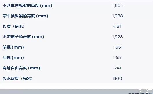 四门版车身尺寸4811×1938(不含后视镜)×1854(不含行李架)