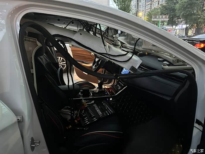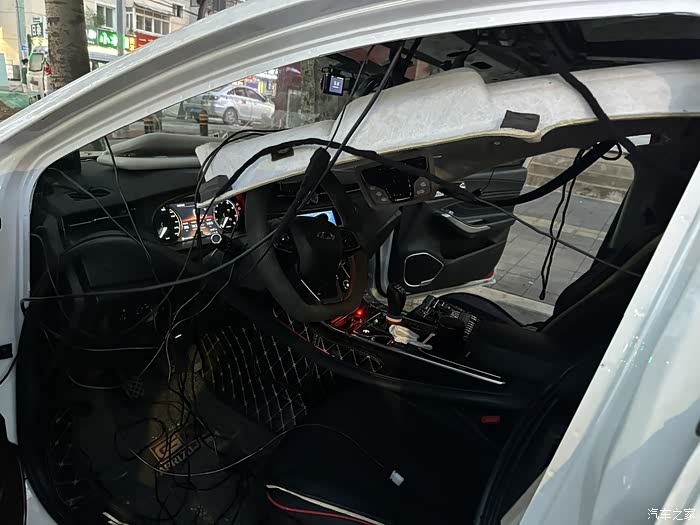 然后将顶棚从后面开始往下拉,要注意在天窗四周附近和前挡风附近的顶棚处有魔术贴,稍微用力拉一下就可以拆下来