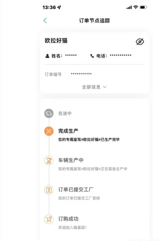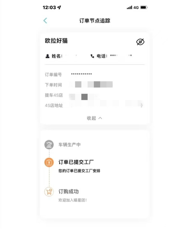 这个欧拉APP估计猫友都熟悉,我是一天恨不得看八百回,其实一周时间已经算很快了,之前试驾别的车被告知提车要等几个月,超慢,相比欧拉算效率高了。