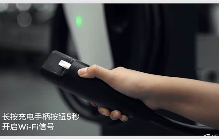 2. 连接充电桩 WiFi:长按充电手柄 5 秒打开 WiFi,家充的绿色指示灯会呼吸闪烁