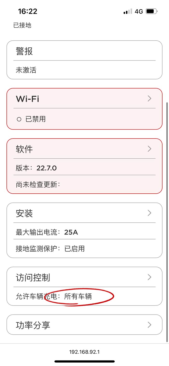 4. 修改充电权限:在访问控制中,将“仅限特斯拉汽车”选项改为“所有车辆”,保存设置后拔掉充电桩,重新插枪即可。