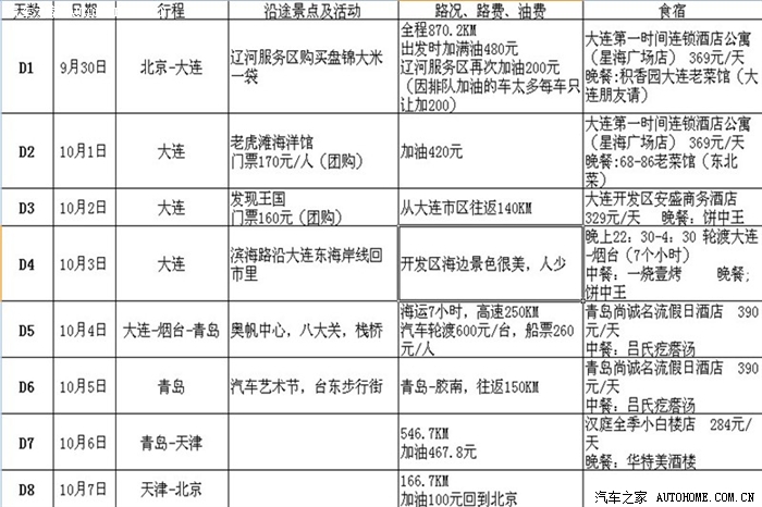最后跟车友们敲定方案三出游——北京-葫芦岛-大连-青岛-天津-北京