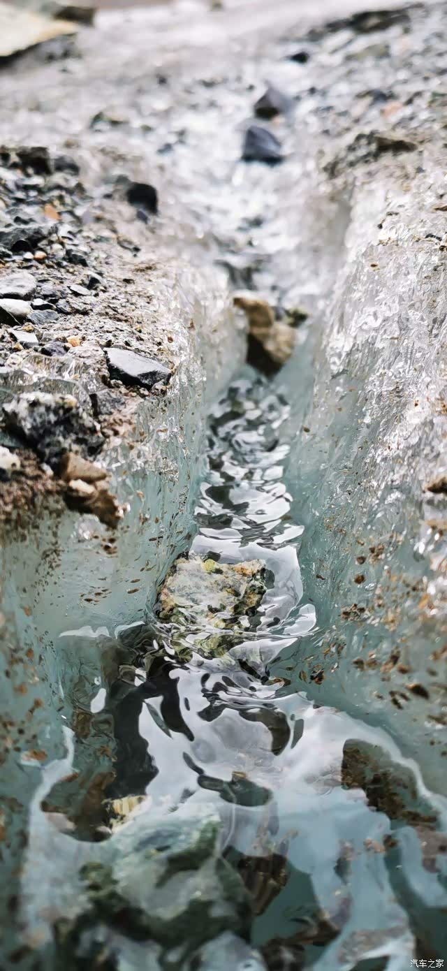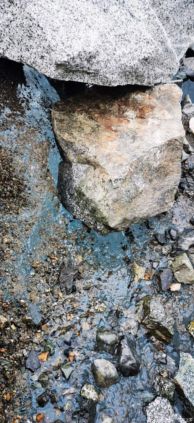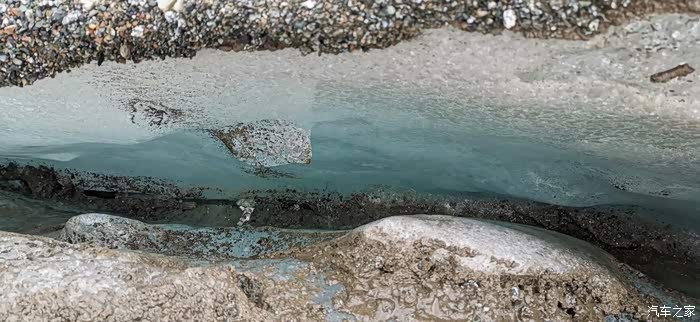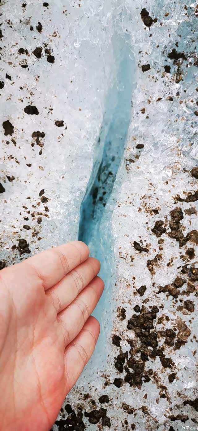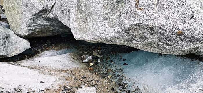 下面这些冰川被土覆盖,会表面上有一层黑黑的,里面确实美丽的蓝色