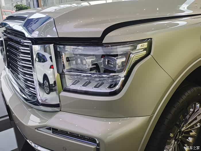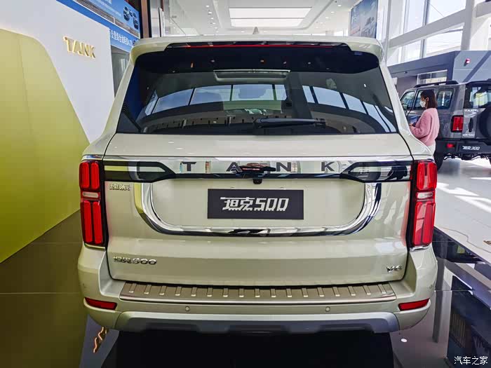 作为一名坦克300的车主驾驶坦克300也快一年的时间。一年时间坦克300的动力算不上充沛但也是够用的。3月底坦克500到店了。我的销售顾问打来电话邀请我去4S店里看看新到的坦克500,我其实也一直关注着坦克500的进展趁着这个机会心里也想过去看看。对比对比的坦克300,第一次去店里没想只是一台展车,可以近距离感受一下了。展车是一台商务版坦克500香槟色,这个颜色也很符合这个车的定位。20寸的选装轮毂显得格外豪华。全系的电动踏板放在展厅里就感觉相当的豪华。