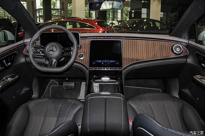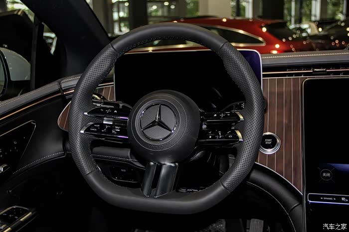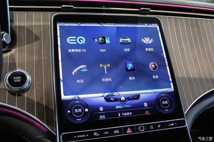 在中控屏下面除了专门的触控空调区域外,还保留一组实体按键,尤其是驾驶模式切换、泊车影像、EQ能量界面这些都是实体按键。按照奔驰的说法,这些都是精心考量后的选择,在驾驶模式切换这些动作上,奔驰认为实体按键带来的确认感和便利性更好。