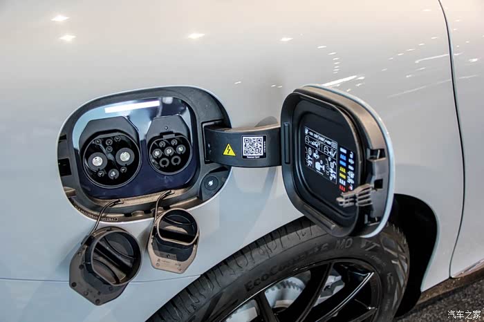 后翼子板上设计了车辆的充电接口,根据官方介绍,新车支持最大128kW的直流充电,可在48分钟内将电量由10%补充至80%。另外一处细节是,在充电盖板位置还贴有一个二维码,用手机扫描这个二维码可以获得车辆车辆高压系统系统布局,当发生事故后,救援人员可以提供过扫描二维码快速了解应该如何切断高压系统。