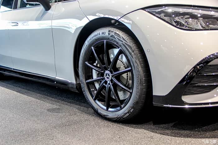 奔驰EQE外观也同样提供豪华和AMG运动两种不同风格,匹配不同的格栅、前后包围、轮圈样式等,我们体验的车型使用了19英寸十条辐的轮圈,并搭配马牌EcoContact 6系列轮胎,轮胎规格为235/50 R19,其拥有出色的能源效率、行驶里程,在操控、制动性能表现上也可圈可点。