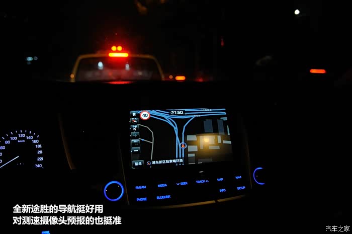 BSD盲区监测这是首次装备在现代的车型上,如果说上面的自动驻车是防止你去祸害别人的话,那么这个盲区监测就是用来预防别人祸害你,先讲一下这套系统日常使用中的特点,当系统检测到你车身侧后方有车辆伴随行驶,对应一侧的后视镜上会出现一个黄色图标,来警告你提高注意力,然后这个时候当你开始往障碍物一侧打转向灯时,途胜会发出告警音,提醒你注意安全。这两天主要拍摄是夜景也让我有了一次难得的体会,当全新时我行驶在那个大圆圈状的南浦大桥上,方向是从黄浦区驶往浦东新区,由于夜景拍摄是比较累的一种风光摄影,等车流、等光线、等曝光、等相机处理降噪,各种站着等,出片率又比较低,往往一个地方拍摄好多张才能有一张满意的,当时返程时已经接近半夜了,桥上光线不如市区街道明亮,有点劳累注意力也不太集中,我在二车道行驶中遇到前面有一辆慢车,当时就打左转向,准备从一车道借道超车,没想到我刚一打转向头,立即响起了警告提示音同时看到左后视镜的盲区监测系统图标点亮,这种情况下本能的判断后方有障碍物,于是马上停止变道,减速回到原二车道同时注意观察,这时候从后视镜中模糊地看到有一辆未开任何灯光的车辆高速接近中,在我看清他车型之前,他就从我左侧呼啸而过了,在庆幸自己有打转向看后视镜的好习惯之余,也不禁不住对这套盲区监测系统感激涕零,先不说真的出现意外情况,是谁的责任,单就全新途胜这1.6吨的车重和各种碰撞测试的五星级安全成绩,我觉得碰撞的结果恐怕也是那辆“黑”小轿车凶多吉少,估计不开灯的人恐怕也不会有系安全带的习惯……祝君好运吧……,同时这套系统探测的距离当时是比较令我意外的,当时观察到“黑”车的距离还是比较远的,后来行驶中针对这个情况进行了观察,发现如果车速较快,或者是后方有车辆以相对高速的状态接近的时候,这套盲区监测系统都可以做到随速适当延伸探测距离提前告警,还真是挺好用的。