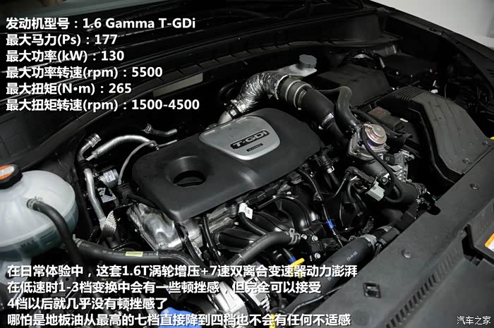 试驾中也体验了全新途胜的这套动力总成,1.6T的177马力动力输出完全不是问题,在高速上时速120公里巡航时依然有澎湃的动力储备,再加速的时候能感觉源源不断输送出来的推动力。同时这套七速双离合变速器在低速时的表现也令我很满意,应该说现代把这套动力总成调校的非常好,日常驾驶时低速缓行频繁加速刹车的顿挫感很小,只能说你可以感觉到变速箱在换挡这种程度而已,乘坐的舒适性很不错,急加速时换挡速度很快,动力衔接几乎没有间断,通过脚感可以感觉变速箱刚刚分离掉上一个档位,下一个档位马上就能衔接上来,高速行驶状态下,这套变速箱的表现更是令人满意,降挡果断,不会思考人生,加档积极,有助于提高燃油经济性。