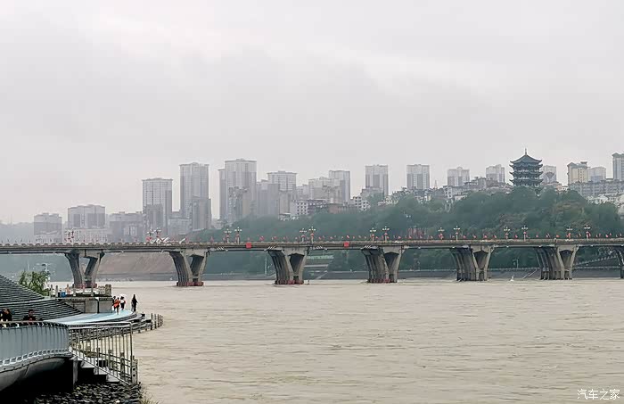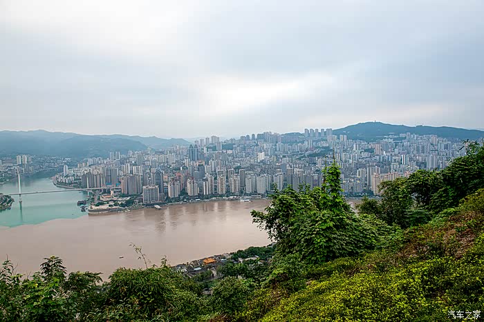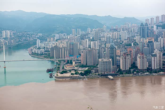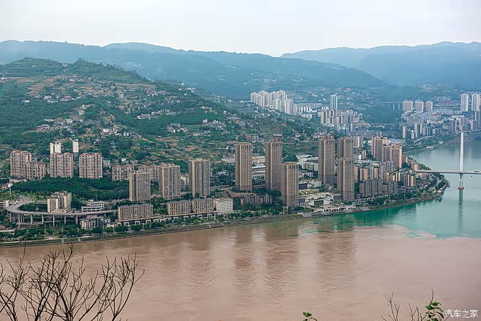 从观景台上可看到涪陵区。乌江和长江,两江相汇。水绿的是乌江。
