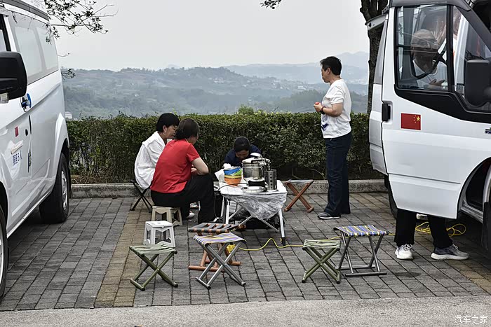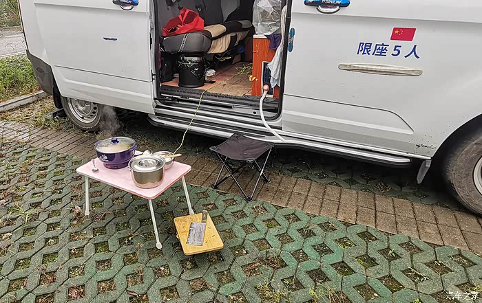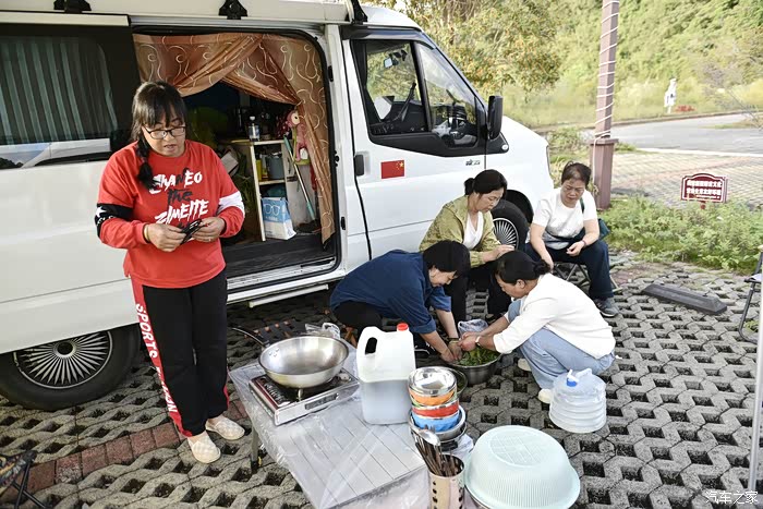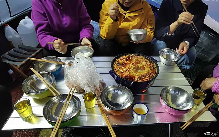 吃饭喽。老华的福顺改装床车后,装的食品很多,100升的车载冰箱,基本上满足了这次的主要食品。