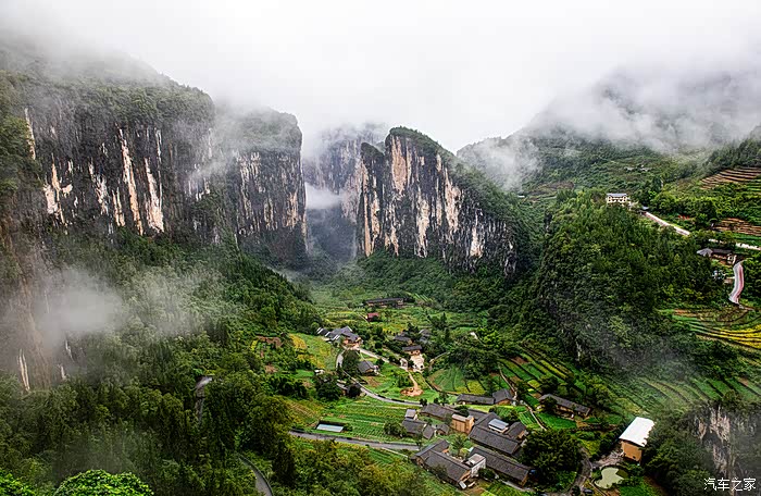 到了恩施大峡谷了,游客中心附近村子很多人家,有几个停车场相邻。
