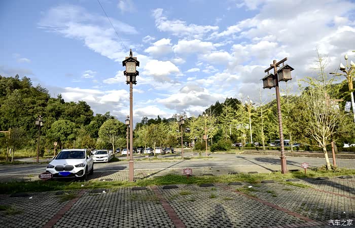停车场内很宽大。毕竟国庆节日过了后,游客不多了,车不算多。