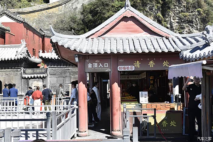 游客中心购票。武当山的门票可不便宜啊,我们60岁以上有优惠,连同车票200多元呢。索道另付。