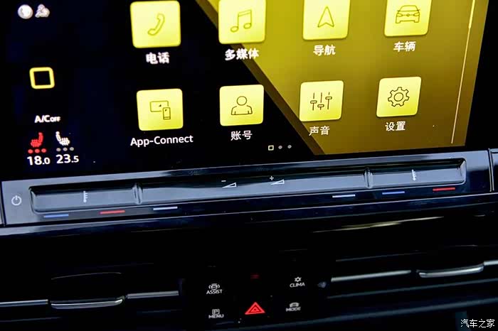 中控屏下方的触控按键可以调节音量和空调温度,同时支持轻触和滑动,说实话,真不如实体按键好用。