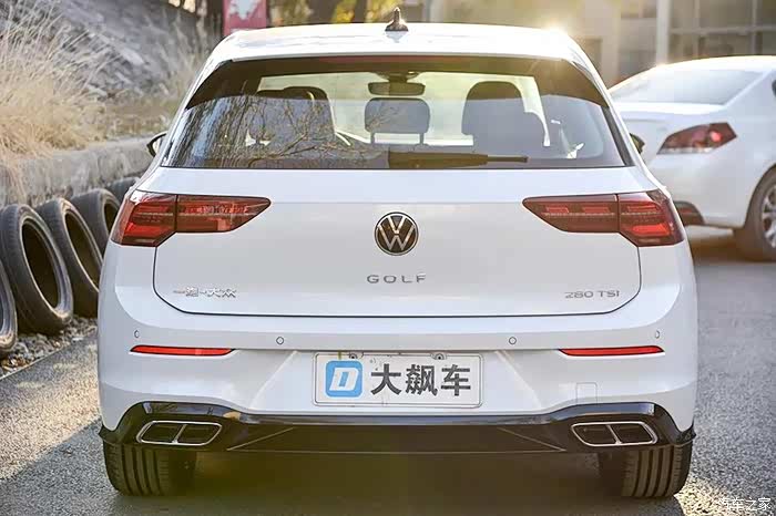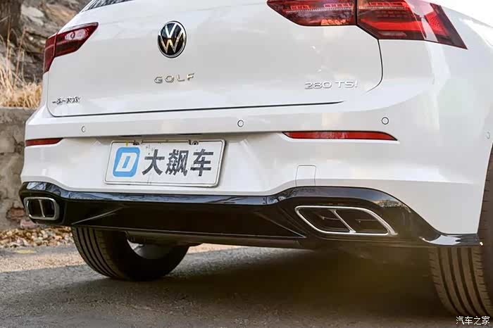 新款高尔夫和其他新出的大众车一样,都变成了“车标下带字母”,听说这样比较高级。这辆车看似有四个排气管,实际上都是假的,装饰品而已。