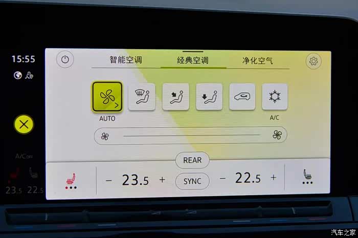 屏幕的下方是车辆常用的快捷键,同样也是触控按键。