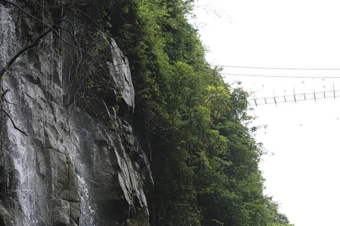 到达了大瀑布下面,可以抬头看到山顶的玻璃栈桥,胆小者就别看了。太高了,下面是百米深渊。