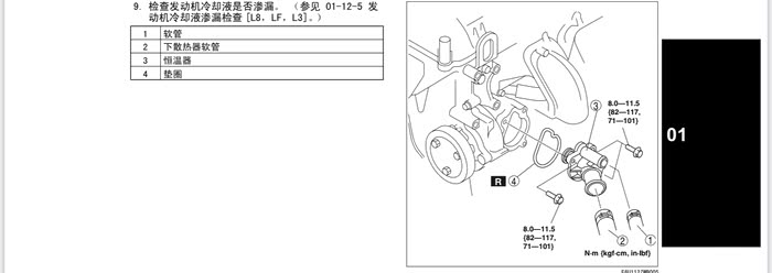 5 松开固定节温器的3颗螺丝,用8号套桶。拿掉节温器,并检查有无问题。先观察是否处于关闭状态,再放入热水观察打开情况。确定是否新换节温器。