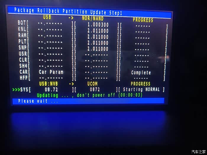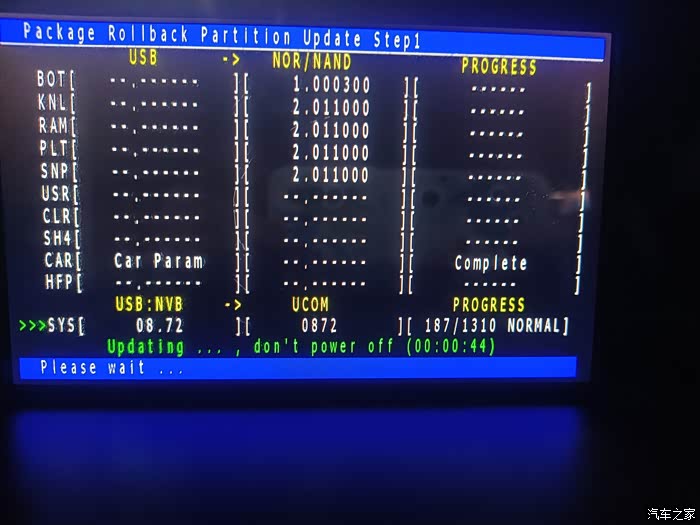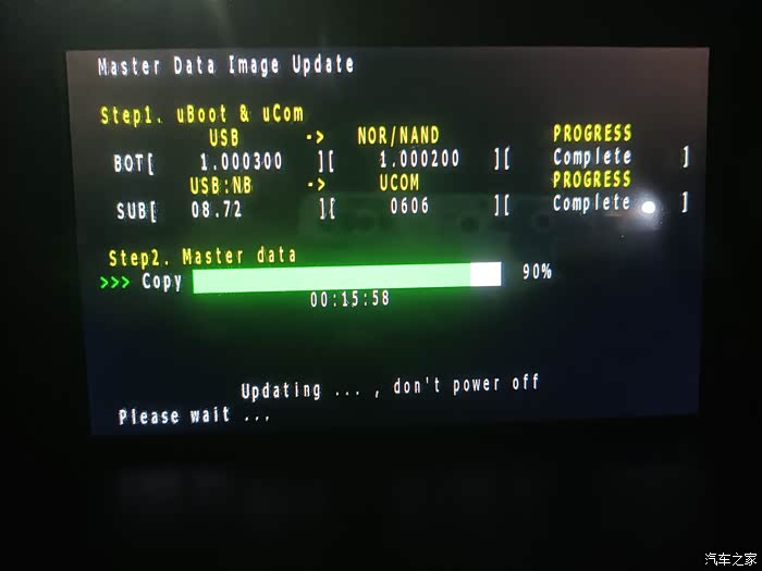 17分钟左右第一部分升级完毕,先拔u盘再熄火