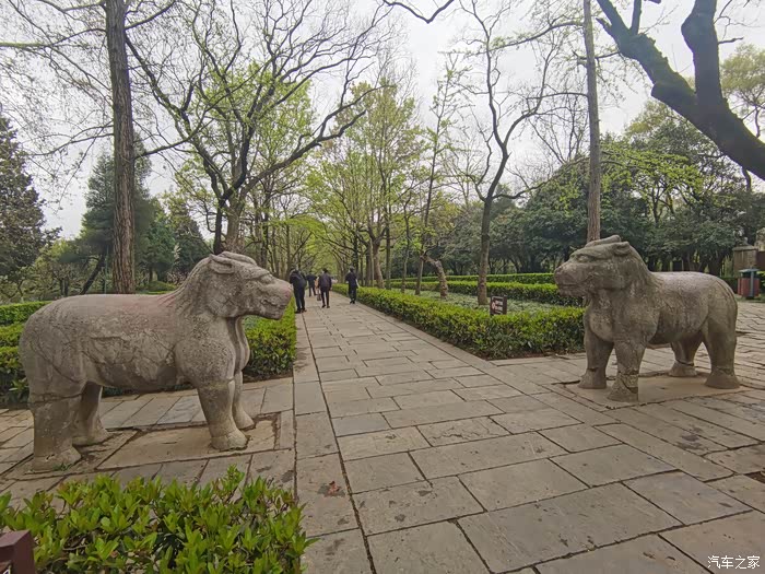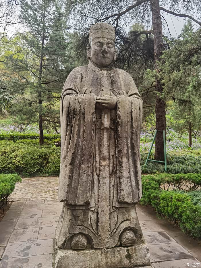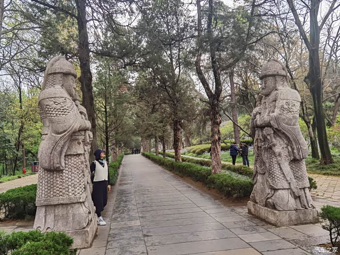 孝陵神道上的石人武将。孝陵的神道还奇特,不是一般帝陵神道那样直来直去,而是拐了个九十度的弯。据说当年修孝陵时发现了孙权的墓挡在前面,原来修筑的官员打算直接挖了,报给朱元璋,朱元璋认为孙权也算英雄人物,直接毁掉他的陵墓不好,不如让孙权给自己看门。所以孝陵神道就是今天这样子了。好像是康熙题的,治隆唐宋的石碑,可谓是高度评价了。明楼,楼上那个彩色的是后修的,原来的毁于太平天国时期。下面是原来的古迹。
