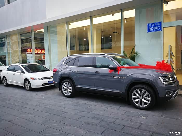 说说提车经历吧,去年九月第一次车展看到teramont的新闻,开始关注和研究。今年二月底四儿子店下定金等车,三月试驾了V6 530感觉很棒。四月中旬确定等不到530后锁定了四儿子店里的矅石灰展车,四月底提车过五一