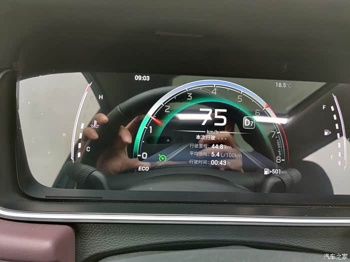 去的时候在路上抓拍了一张,时速保持在70~80码,发动机转速≈1500转。