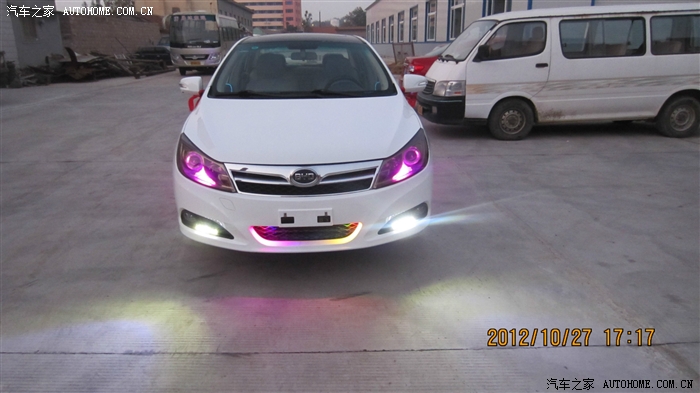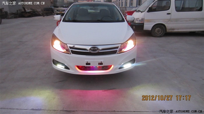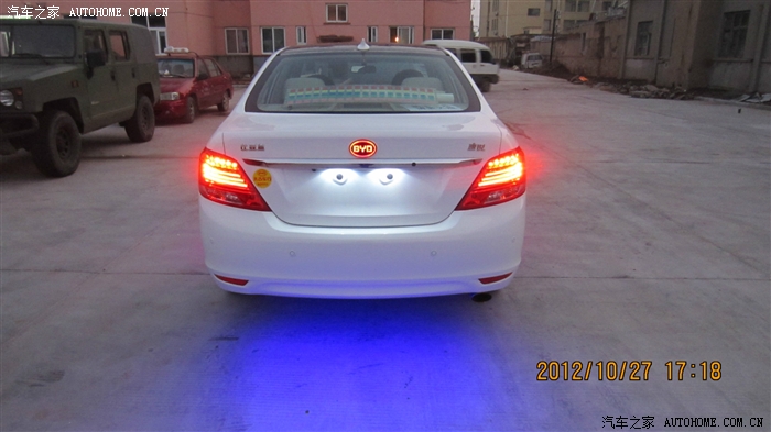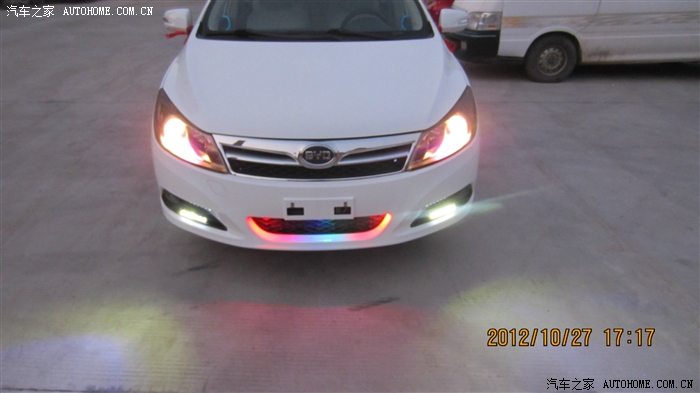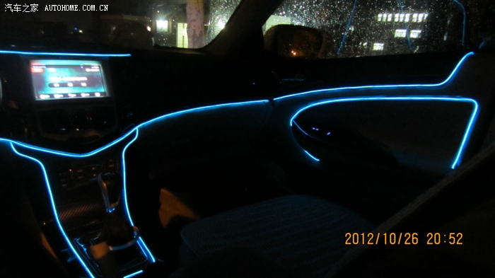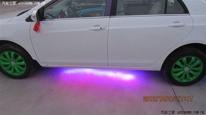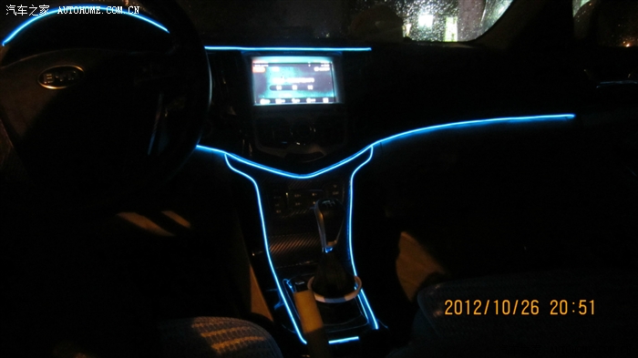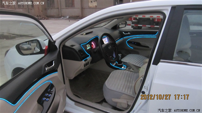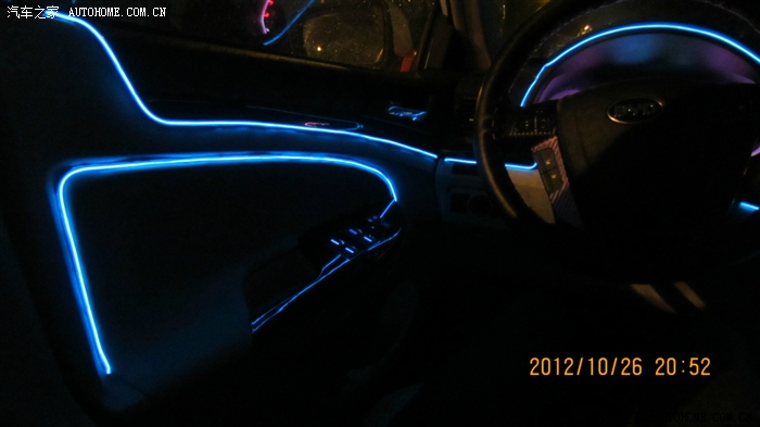 蓝色的冷光线,怎么样,全车通电后就会亮,白天一般看不出来亮,晚上效果很不错,而且光线柔和,一点都不刺眼,效果嘛。。。往下看